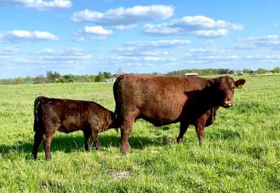 Daughter of Renegade, 413E with her Leachman Accellerate heifer calf.